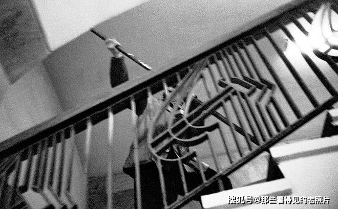 1988年—1989年,楼梯上打扫卫生的大叔,楼梯扶手上还可以看到苏联的镰刀锤子标志。