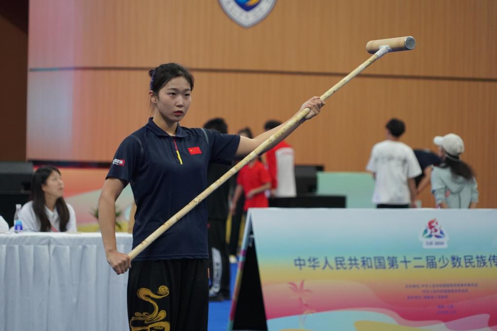 42岁的金红兰是吉林省代表团民族武术项目的教练员,这是她第四次参加全国少数民族传统体育运动会,前三届是运动员,这次她带领三位来自延边大学的学生参赛,希望能让更多人了解民族武术的美与力量。